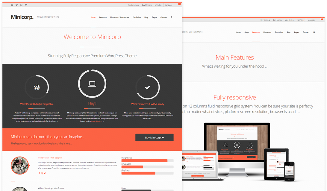 Minicorp comes with fresh, clean and modern design which suits perfectly almost any kind of page. You can use it as a Corporate, Personal, Creative or Product portfolio, but we are sure you will find much more ways to use it for your own projects.